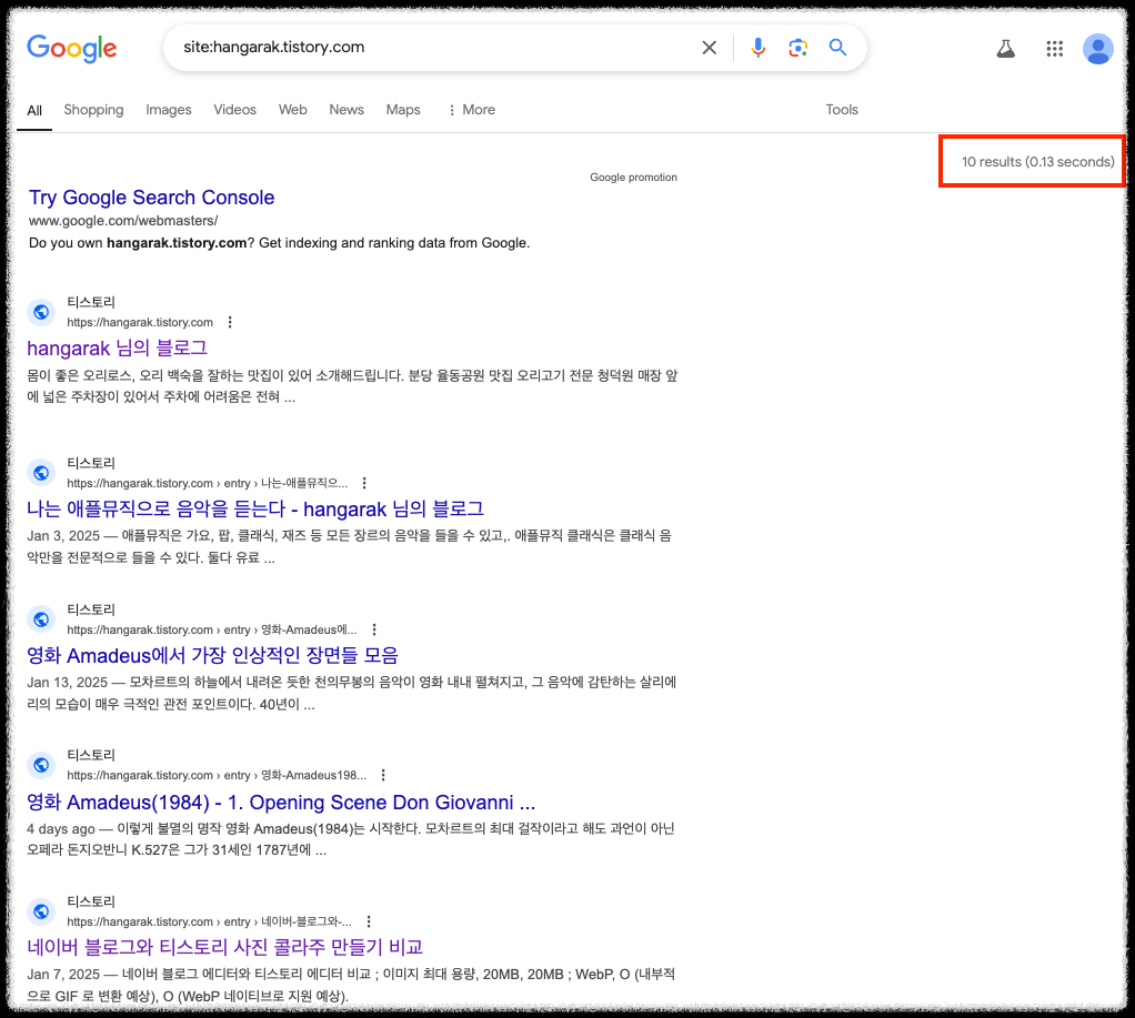 저의 이 티스토리를 구글 서치콘솔에 등록한 지 꽤 되었지만 구글 검색에서 글이 노출이 잘 되지 않고, 빙과 네이버에는 등록하지도 않았는데 여기 티스토리 글들이 잘 나온다는 것입니다.