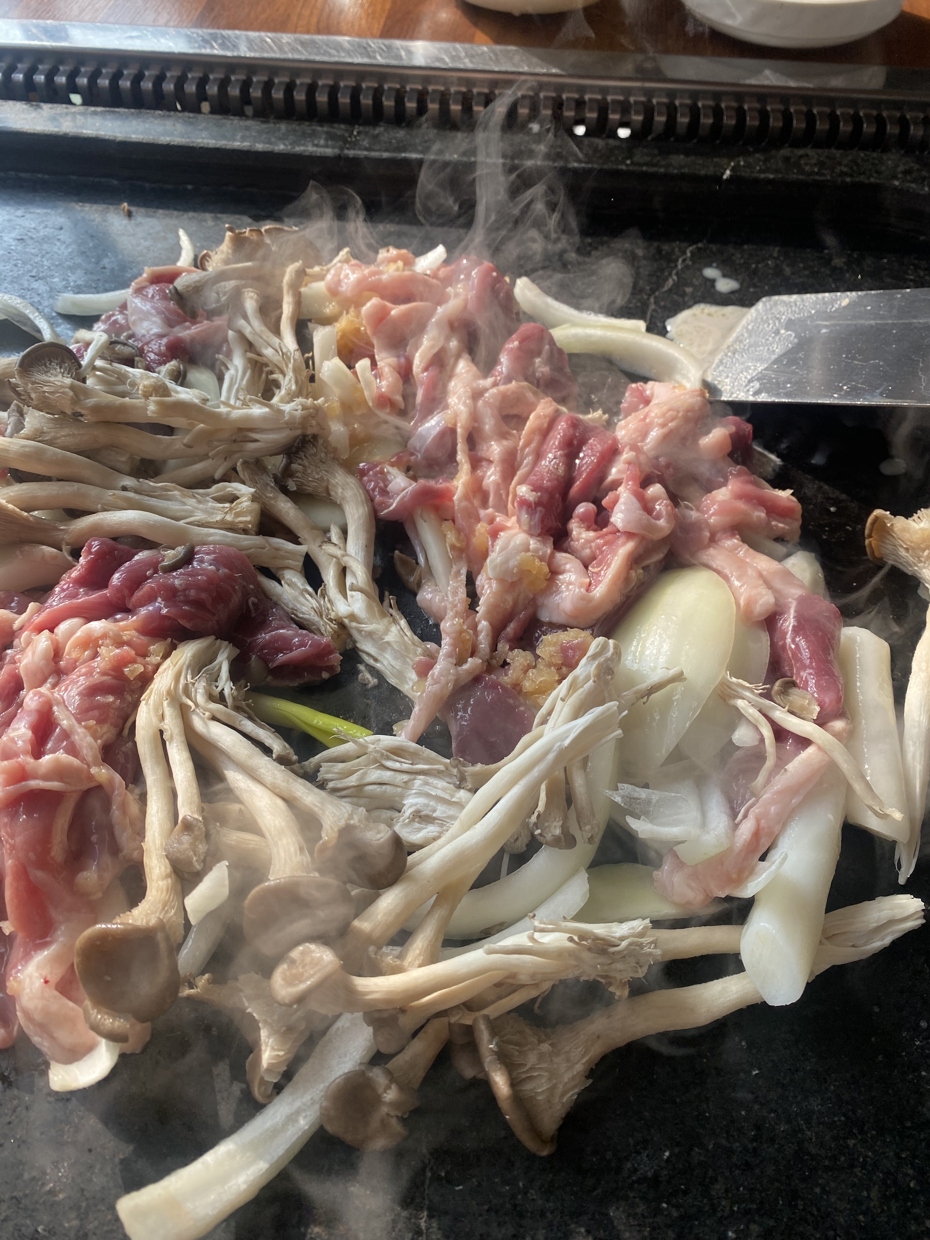 이곳은 특징이 넓은 돌판에 다 구워주신다는 점이에요.
