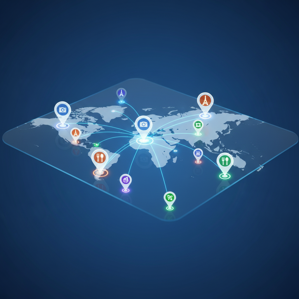 지도 기능도 크게 업그레이드됐어요. 이제 숙소 주변의 랜드마크, 관광 명소, 레스토랑 같은 관심 지점들이 지도에 직접 표시돼요. 각 장소를 탭하면 상세 설명과 숙소로부터의 거리 정보를 확인할 수 있답니다.